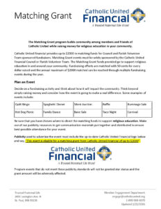 This program provides a match of up to $1,000 when your Parish Volunteer Team hosts a fundraiser in support of a school or R.E. program.